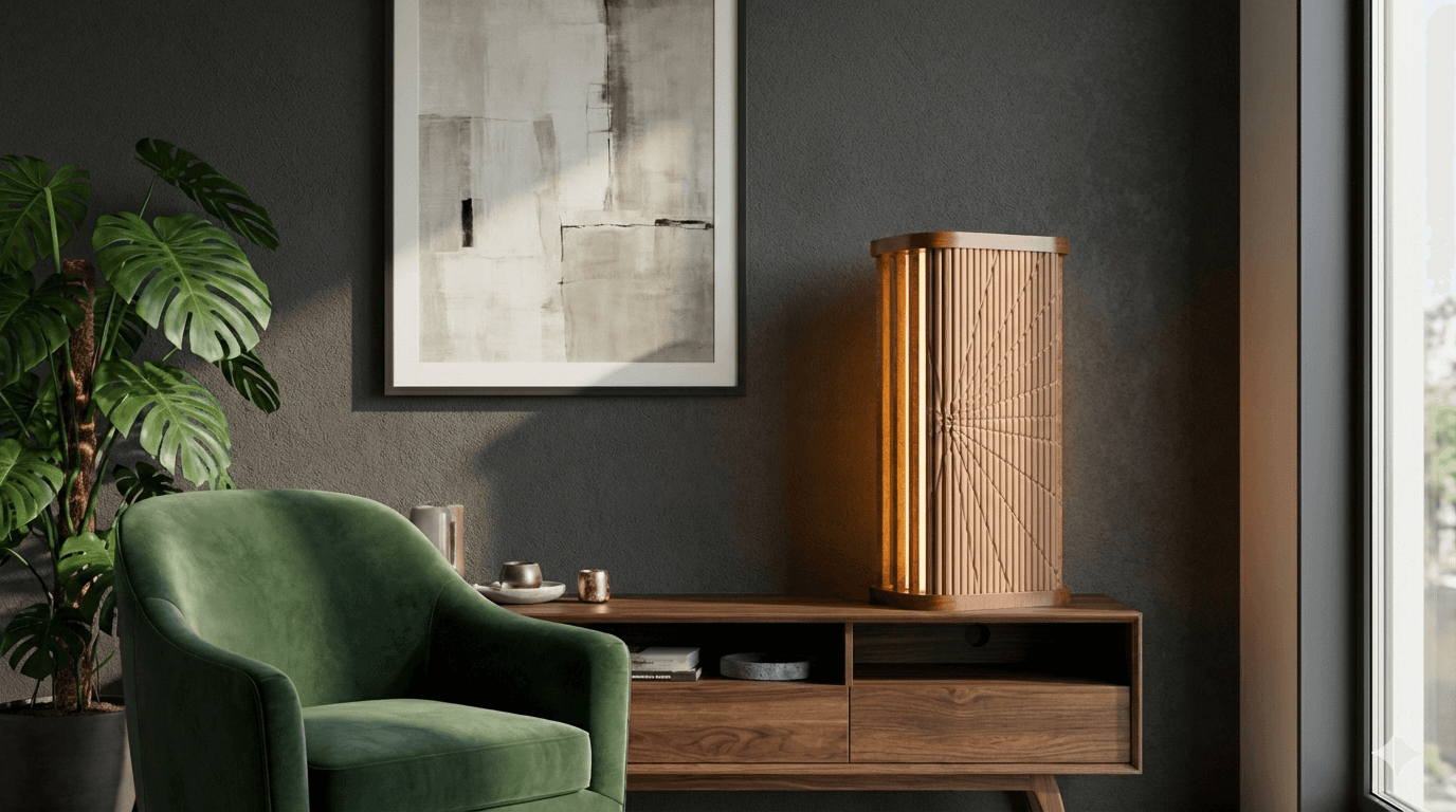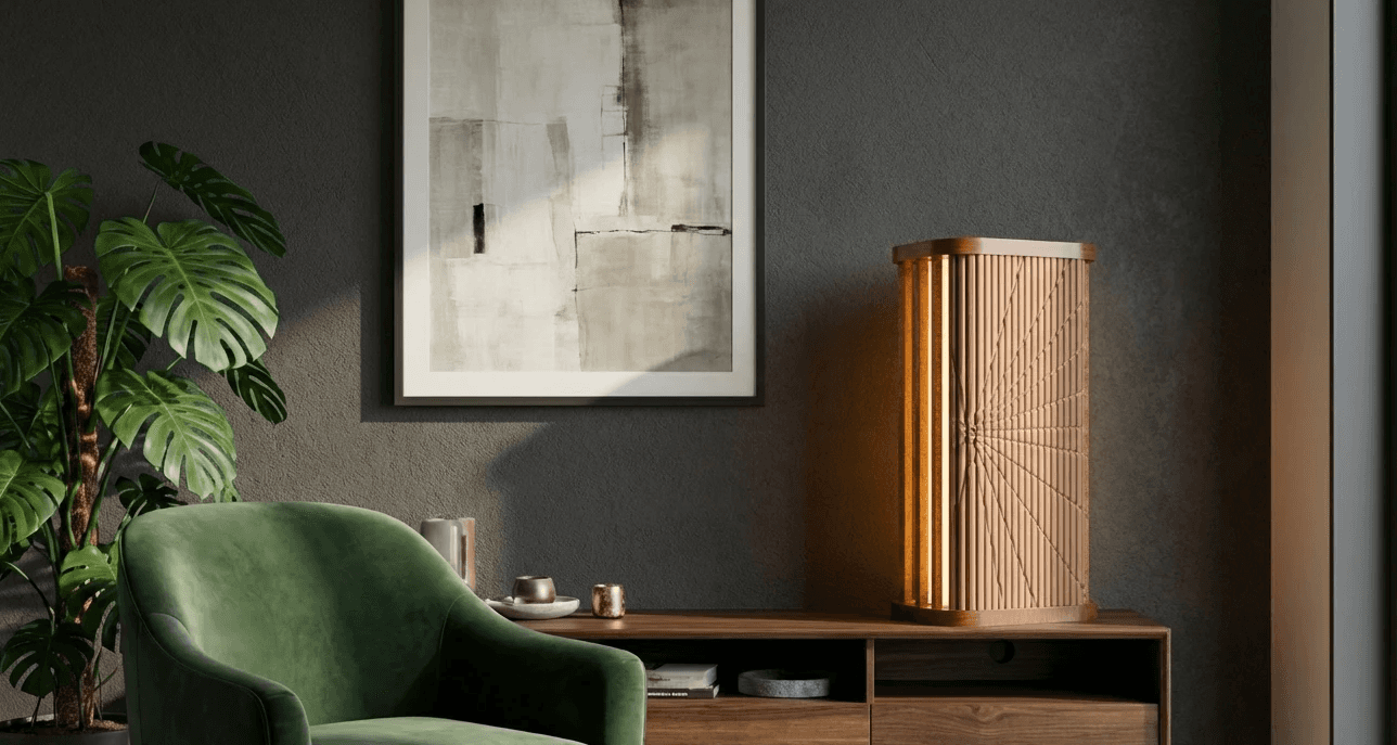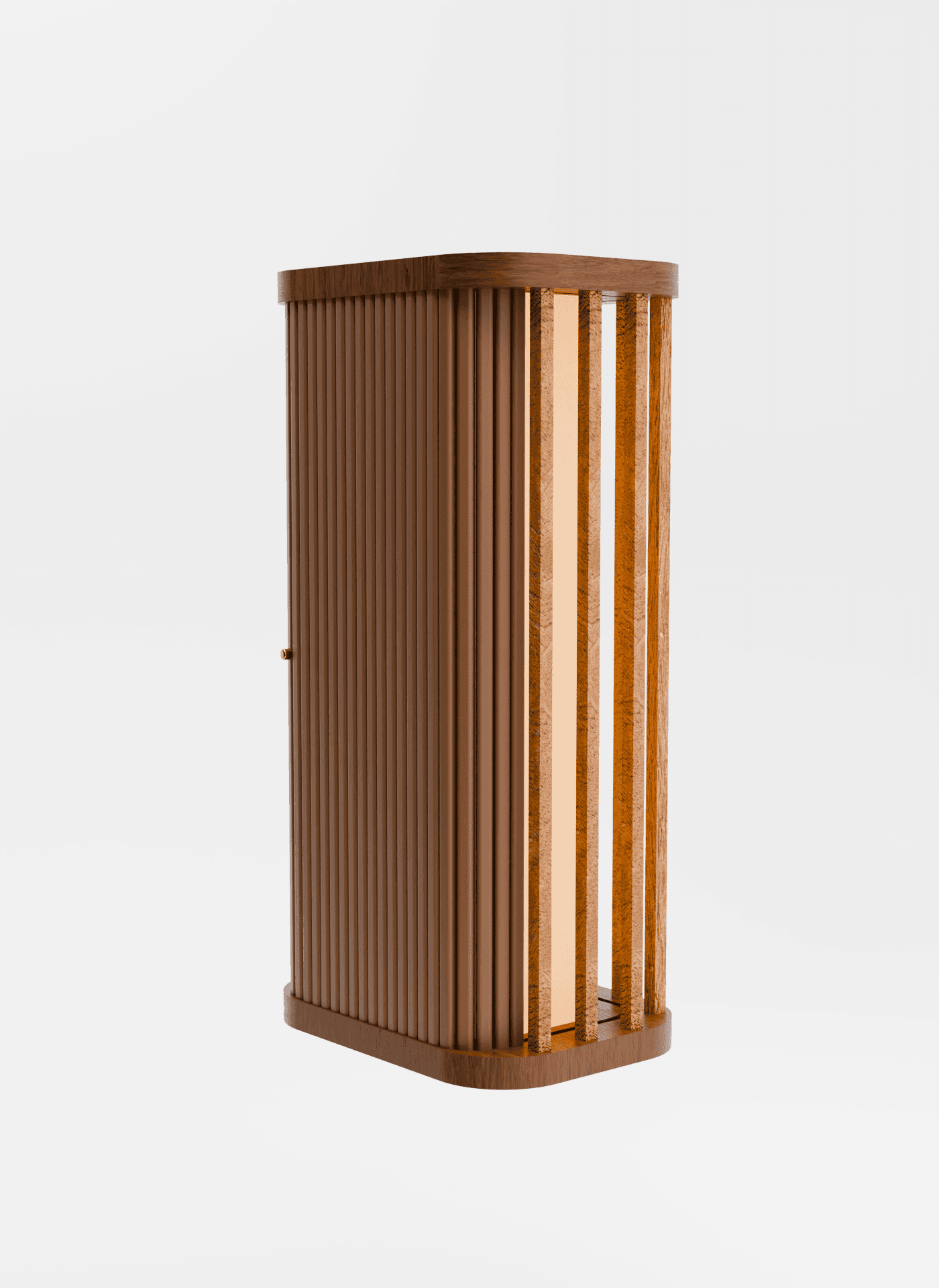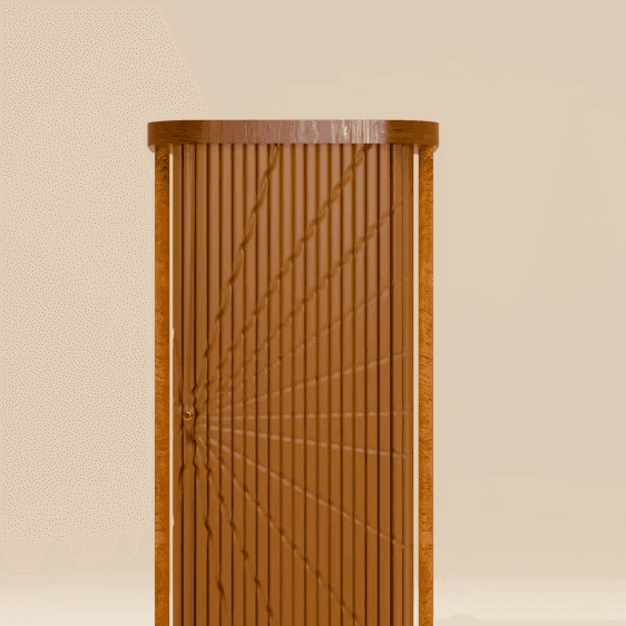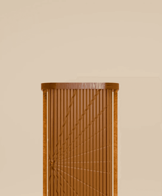 Inspired by the rhythmic, rippled form of the classic tambour door, every piece in the collection carries that signature movement — slats of light and shadow, folding and unfolding, as though the lamp itself is mid-gesture, mid-invitation. As though it's asking you to step forward into something warmer.
